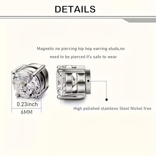 - Material : Stainless Steel || Earring Size : 6 mm x 6 mm || Package : 1 Pair of for mens stud earrings for women Strong Magnetic Hold – Secure magnets keep the earrings firmly in place while remaining comfortable to wear.