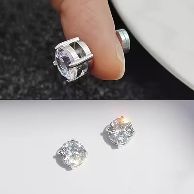 - Type : Clip-On Style Fake 0.23 INCH SIZE Stud Earrings – No Piercing Required (Suitable For Non-Pierced Ears Also) Magnetic Studs for Men Magnetic clip-on design gives the look of real studs without pain or permanent piercing.