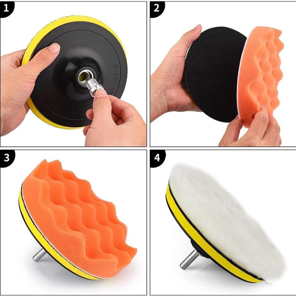 - Polishing Pads Complete 11-Piece Buffing Pad for Drill Machine Includes a variety of foam pads with different hardness levels to handle cutting, polishing, finishing, sealing, and glazing for all stages of car detailing.